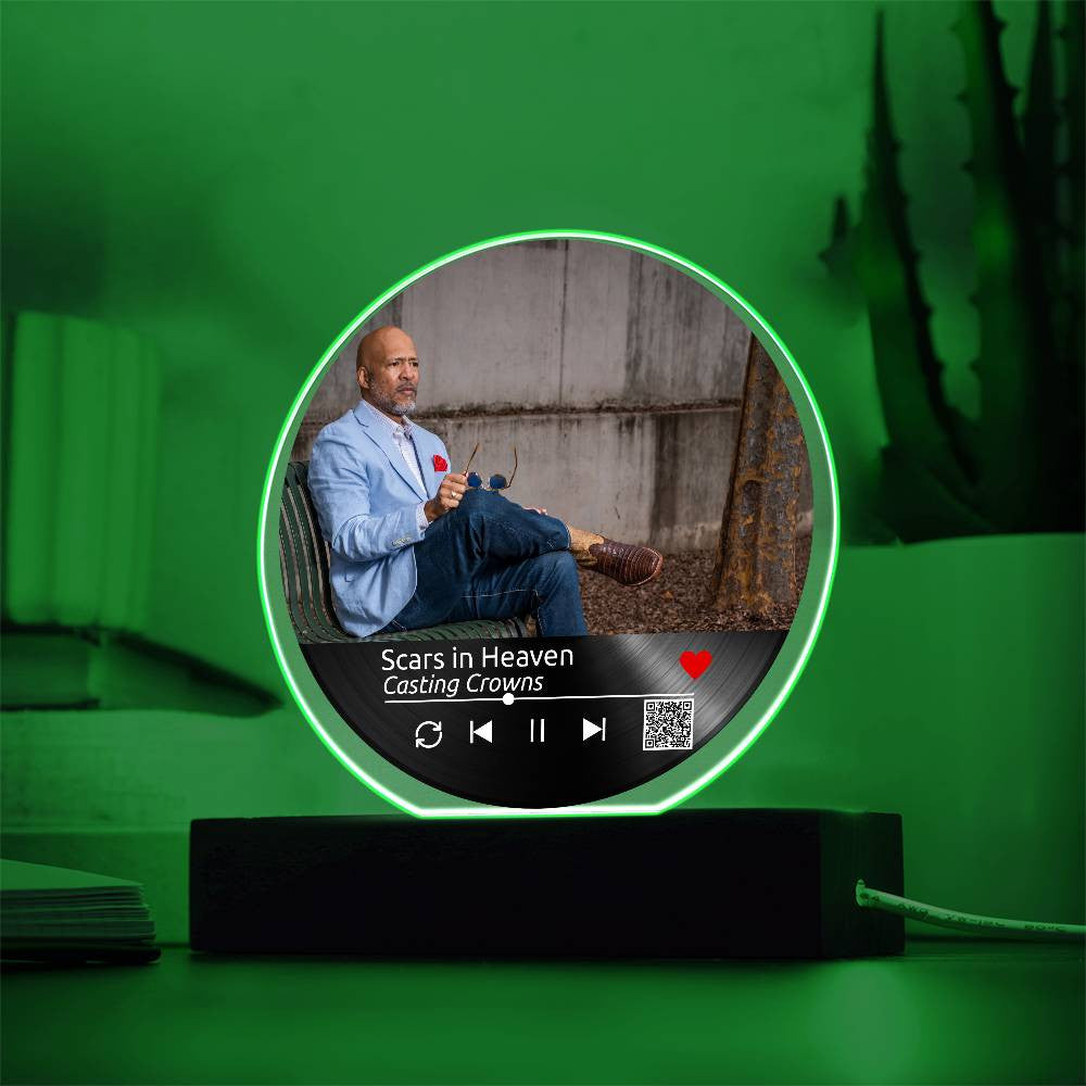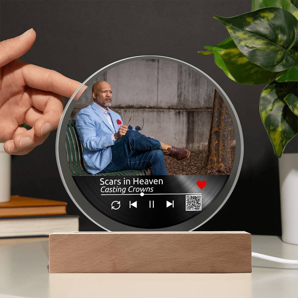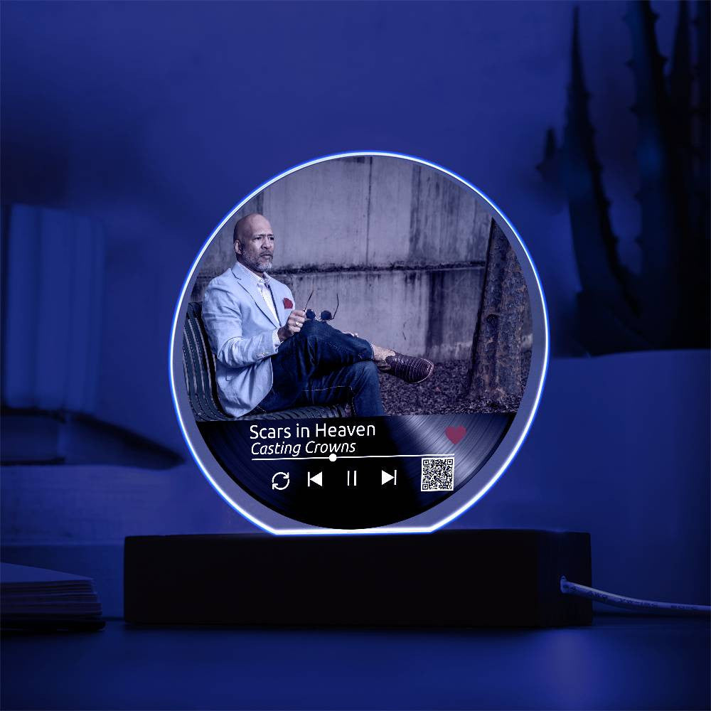 Custom Melody Keepsake w/QR Code - Acrylic Circle Plaque w/LED base
