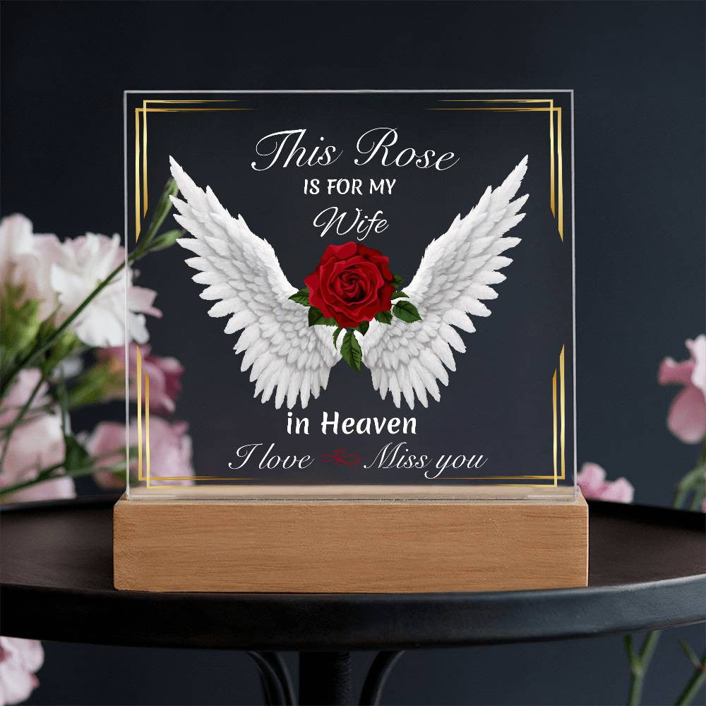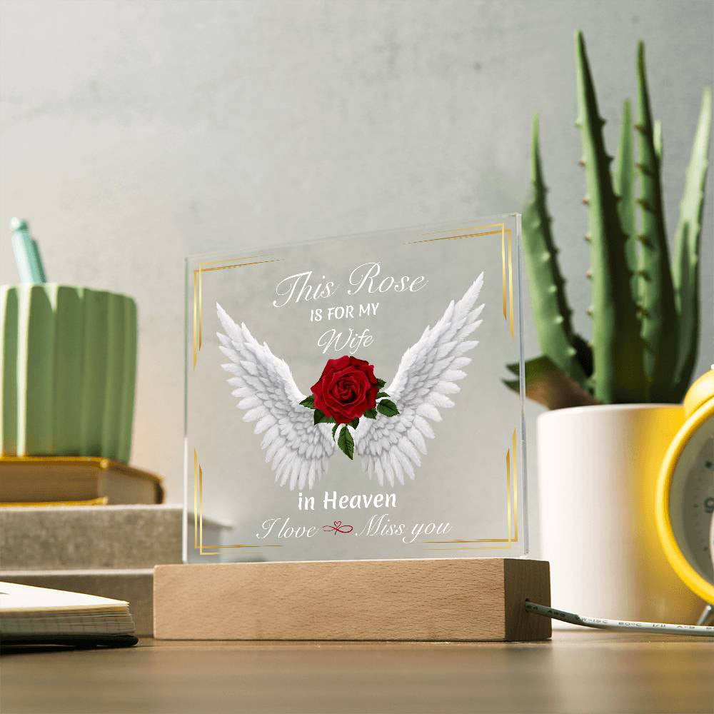 This Rose Is For My - Memorial Acrylic Square Plaque w/LED base