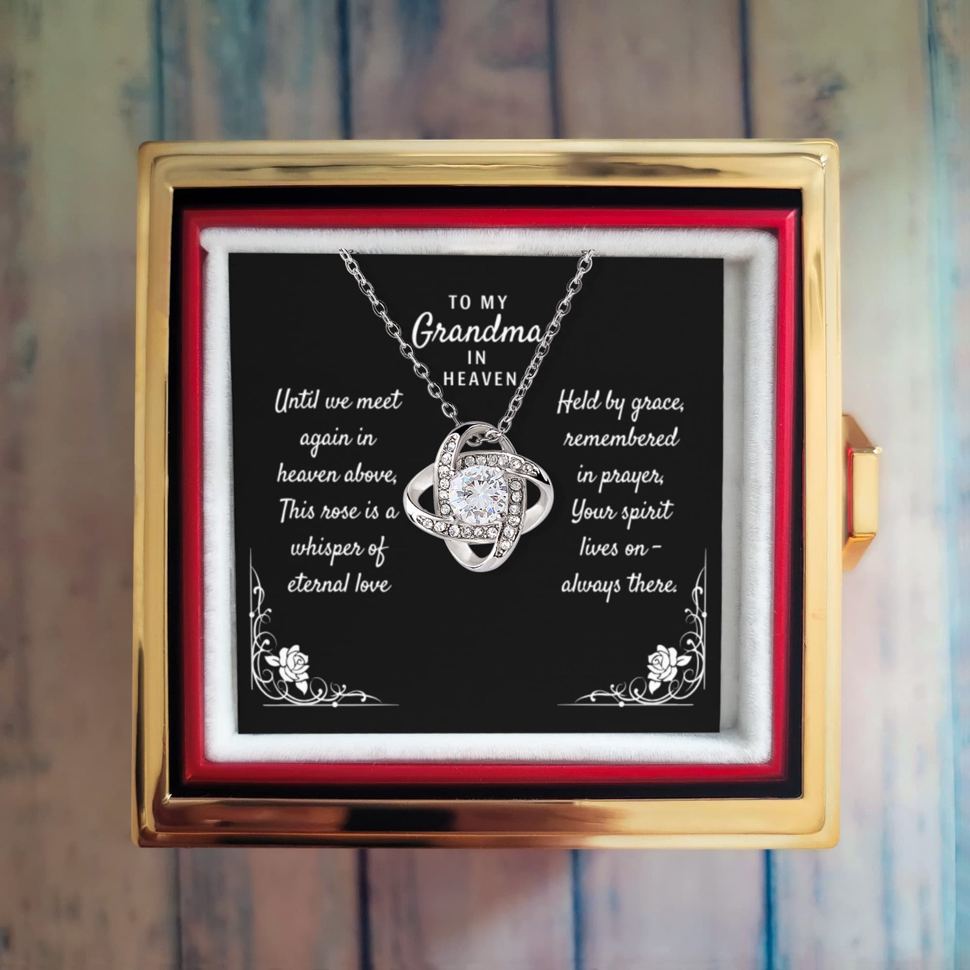 Celebrate a love that endures beyond time with our Eternal Love Knot Necklace presented in the elegant Rotating Rose of Remembrance Gift Box.