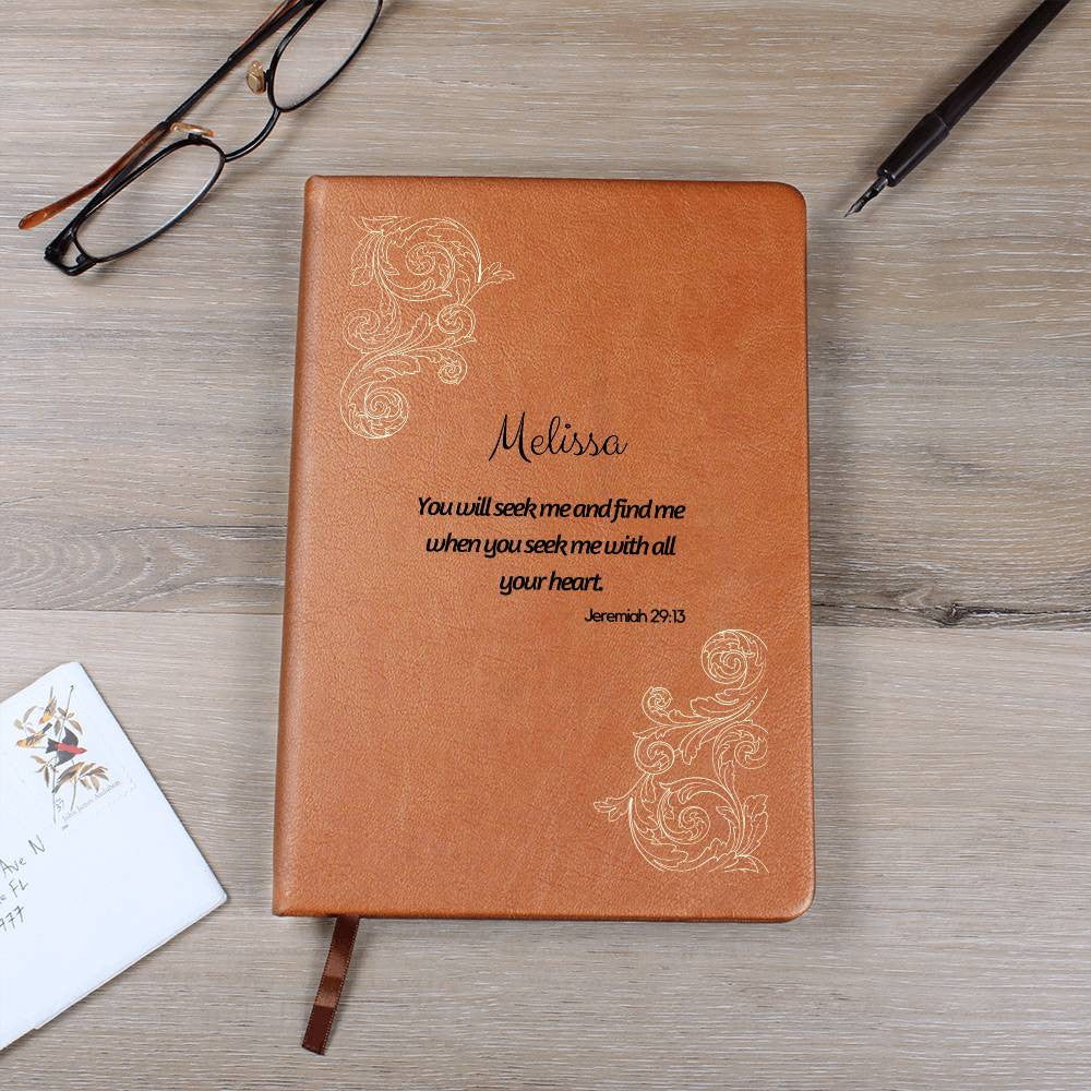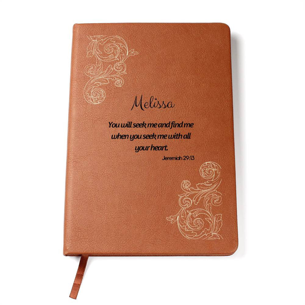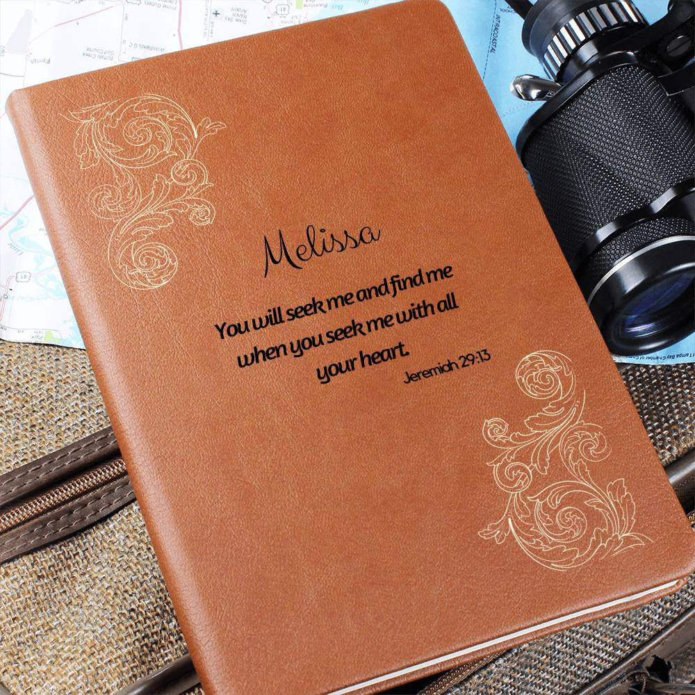 Embark on a journey of seeking with our inspiring journal. The cover echoes scripture, You will seek me and find me when you seek me with all your heart. Blank pages become a sacred space for your heartfelt search, connecting you with the divine on every page.