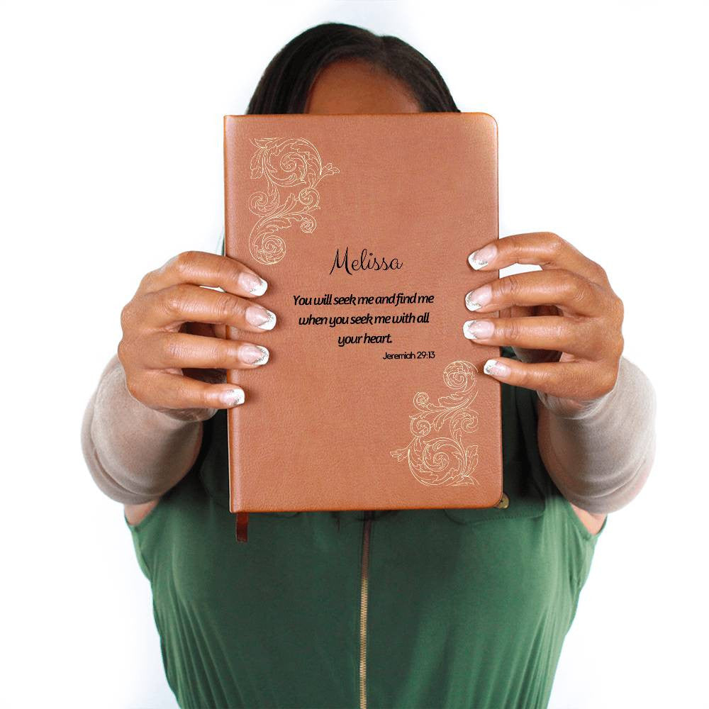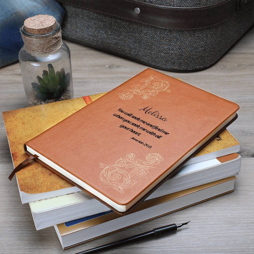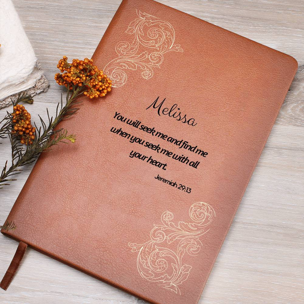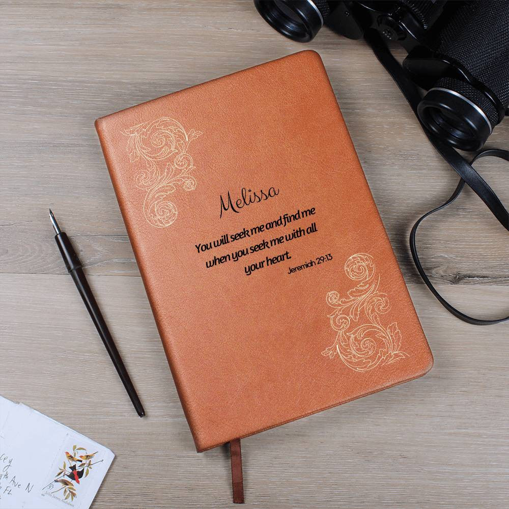 Embark on a journey of seeking with our inspiring journal. The cover echoes scripture, You will seek me and find me when you seek me with all your heart. Blank pages become a sacred space for your heartfelt search, connecting you with the divine on every page.